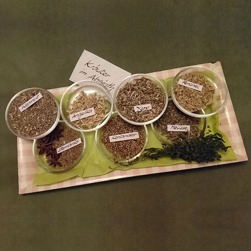 ist grundsätzlich die Kombination von hochprozentigem Alkohol und Extrakten verschiedener Heilpflanzen, vor allem WERMUT (Artemisia absinthium).