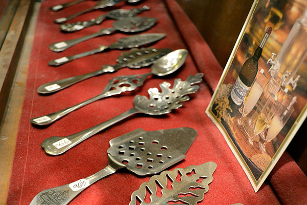 Außer über 120 verschiedenen Sorten Absinth, einigen außergewöhnlichen Likören und Bränden, einer Sorte Gin, Whyski, Honigwodka und verschiedenen Acecoirs rund um den Absinth (Absinth-Gläser, Absinth-Löffel, Absinth-Fontainen, Absinth-Schokolade, Absinth-Bücher) gibt es auch noch ausgewählte Schmuckstücke und Keramik- vorwiegend von regionalen Künstlern.